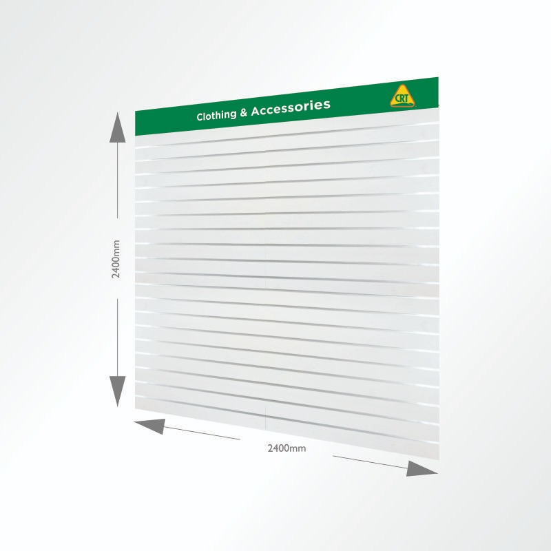 The above display measures 2400x2400mm and includes CRT Header Sign as well as the following accessories: