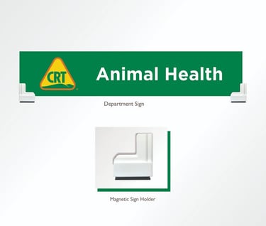 Double sided department header signs strongly feature the CRT branding. Teamed with Magnetic Sign Holders they sit directly on to the metal top capping of Island Gondola bays.