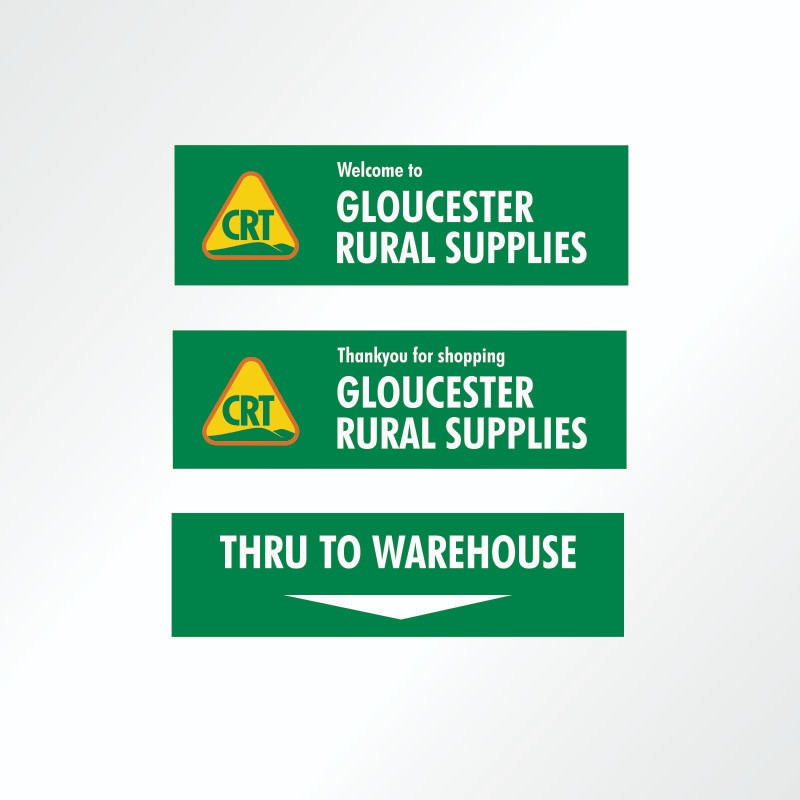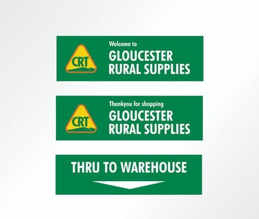 Directional signs identify your store whilst highlighting the CRT brand to customers. The 'Welcome To' sign should be placed above or near the entrance to the retail display area and the 'Thankyou for shopping' sign near the exit.