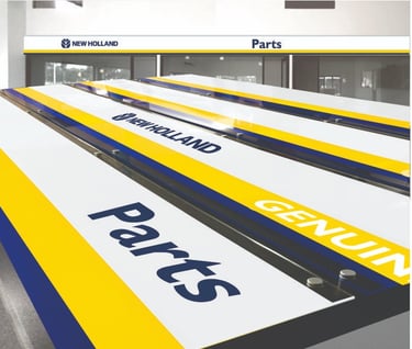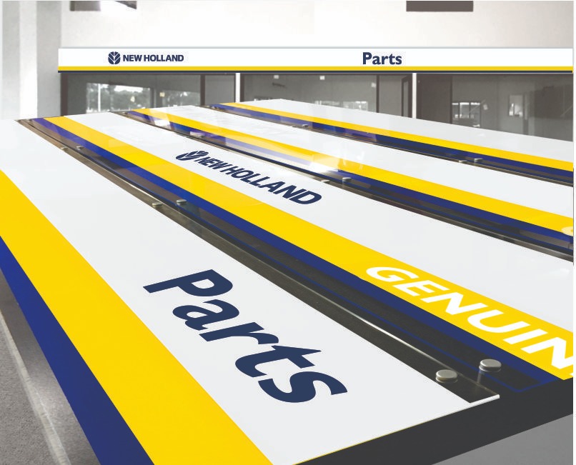 Acrylic panels have polished edges and feature New Holland branding along with your own dealership identification as required.